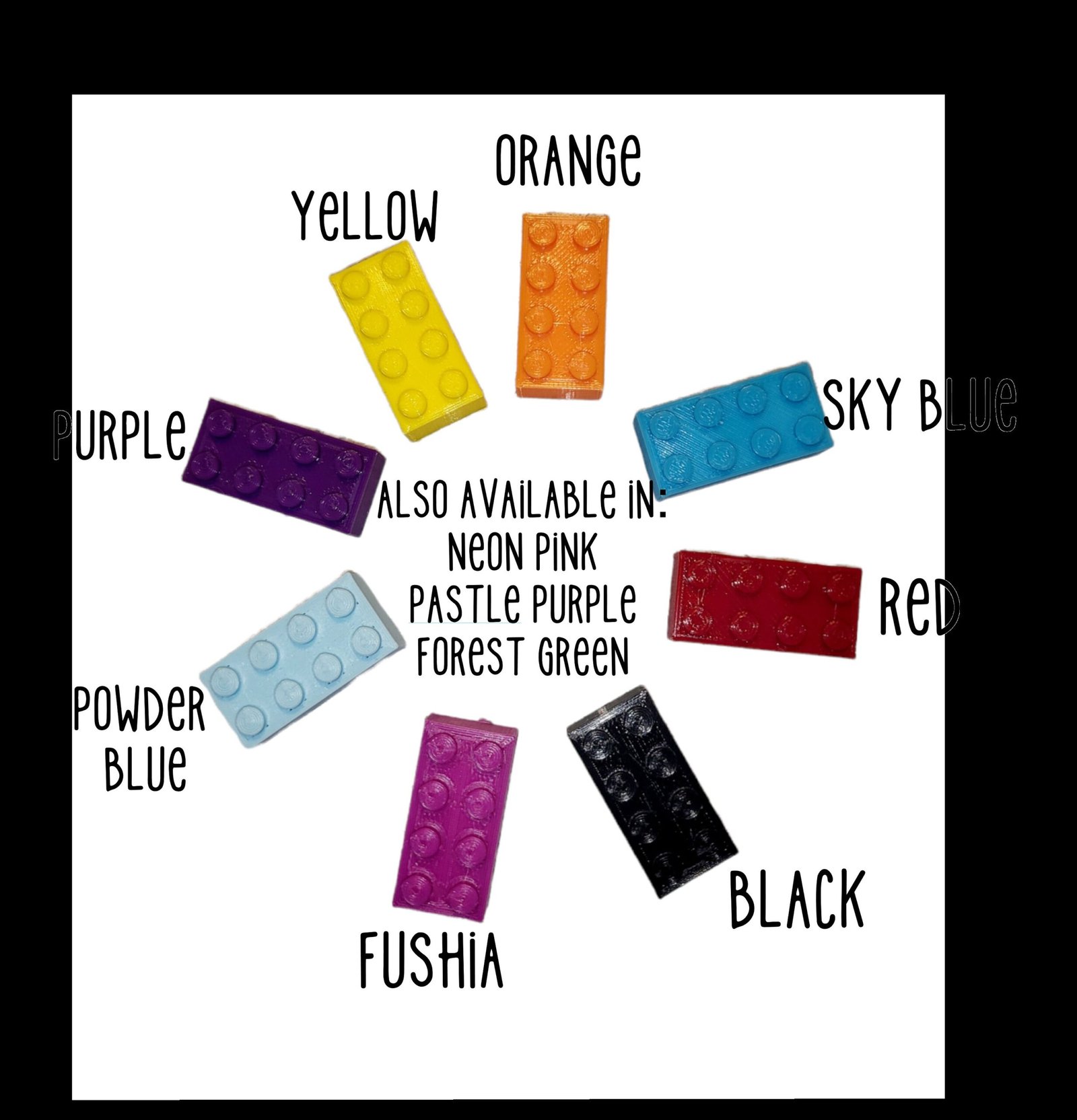 Fits perfect with any other brick blocks or you can add a blank bricks in your chosen colours to your order.