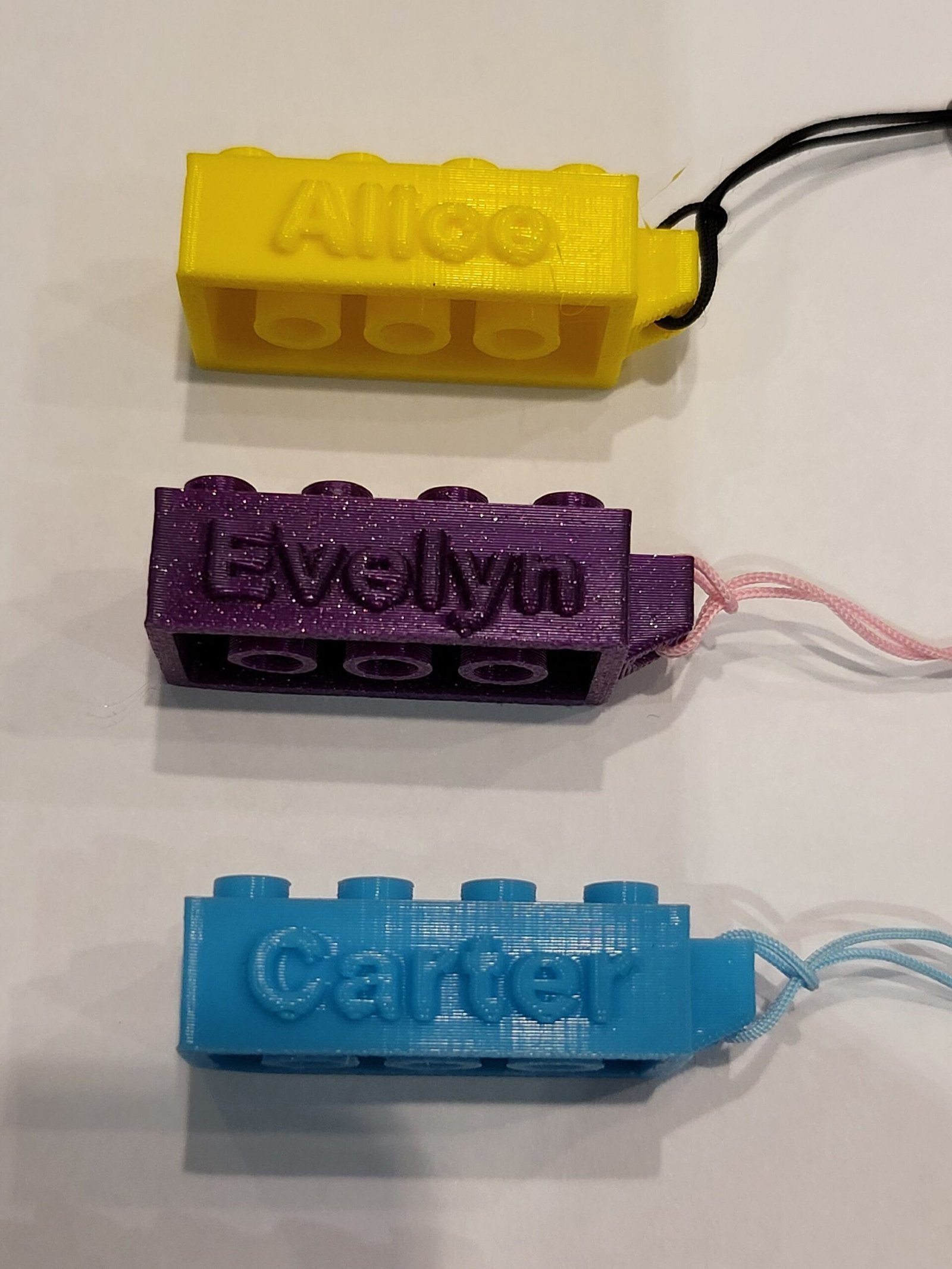 Personalised 3D Printed brick key rings.