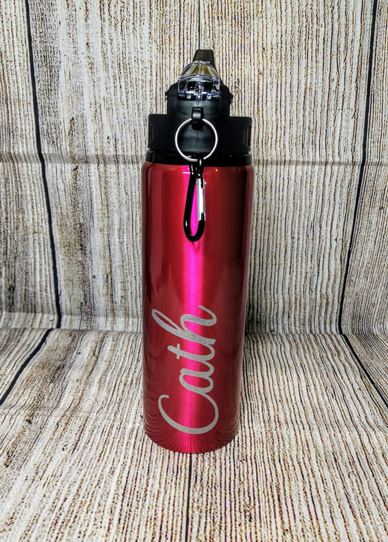 These personalised metal water bottles are great for work, hikes, gym and other sports. It is also good for the environment. It comes with a carabiner clip to make it easy to attach to a variety of bags.